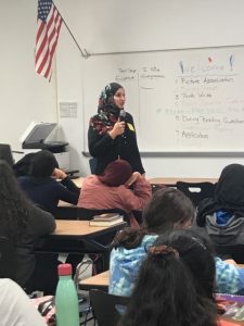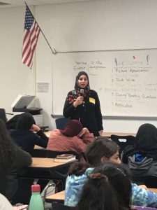 Ms. Suehaila Amen presents to students about leadership and the importance of education