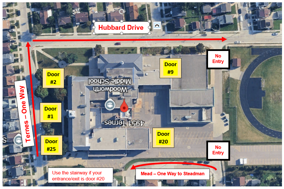 Photo Above: Woodworth arrival and dismissal traffic flow map